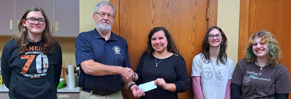 " Steve Davis, President Morrison Kiwanis, is shown last year, presenting a $200 check to Hillary Blevins for Morrison Girl Scouts. This is one of the organizations Kiwanis Club supported in 2025. We thank our community for all the support they give us, so we can help others. On Tuesday,"