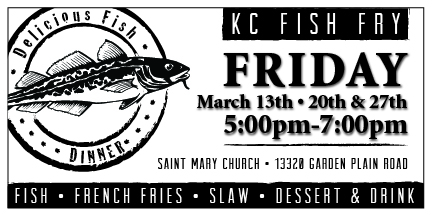 Enjoy all-you-can-eat, fried and baked Alaskan Pollack. Beer-battered fish, French fries, slaw, dessert, and a drink will be $14 per adult and $10 per child 12 and under. Desserts will be made by St. Mary Catholic Church’s families and Council of Catholic Women.