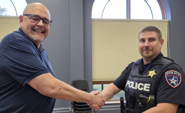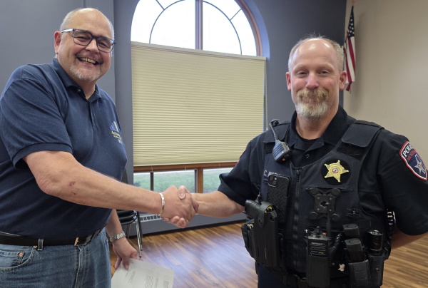 The Mayor led a pair of Morrison Police Sergeants in taking their Oath of Office, citing their promotions. Top-to-bottom, Sgt. Curt Workman was assigned to Patrol; Sgt. Cory Drowns was assigned to Investigations.